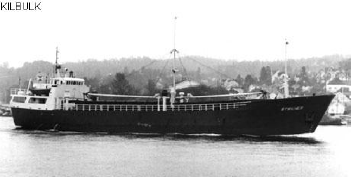 The Kilbulk was a 177nt 57 metre long Norwegian coaster, built in Trondheim in 1968. She ran aground in bad weather in July 1987 and sank a few hours later, after the crew had been rescued. The wreck lies in a narrow gully with a flat bottom at 38m. The stern was upright and intact in summer 2003, but the wheelhouse was moved through 90 degrees and damaged during a storm that winter. The bow is inverted and shows massive damage where the Kilbulk struck the rocks. This wreck is in an exposed position, and is close to the controlled fairway used by very large vessels.